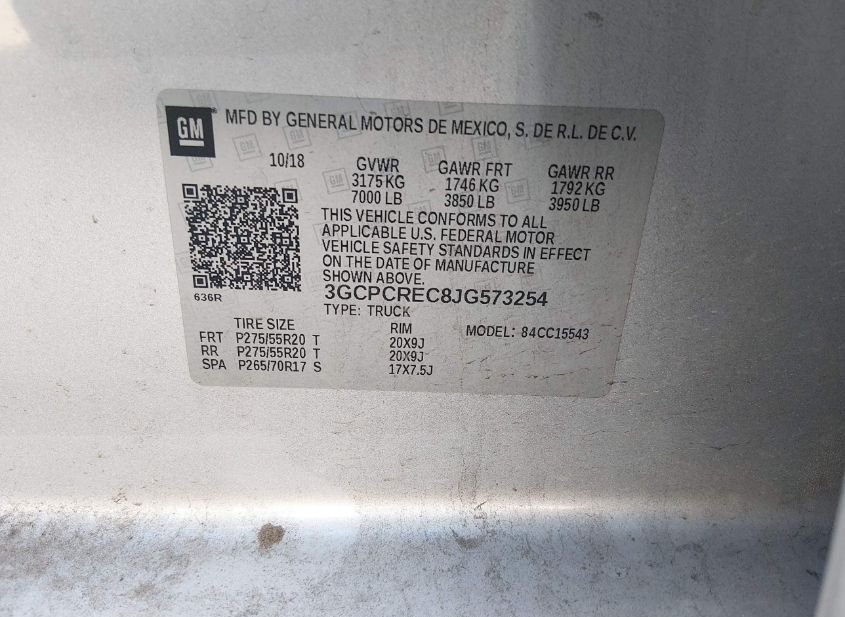 - VIN: 3GCPCREC8JG573254