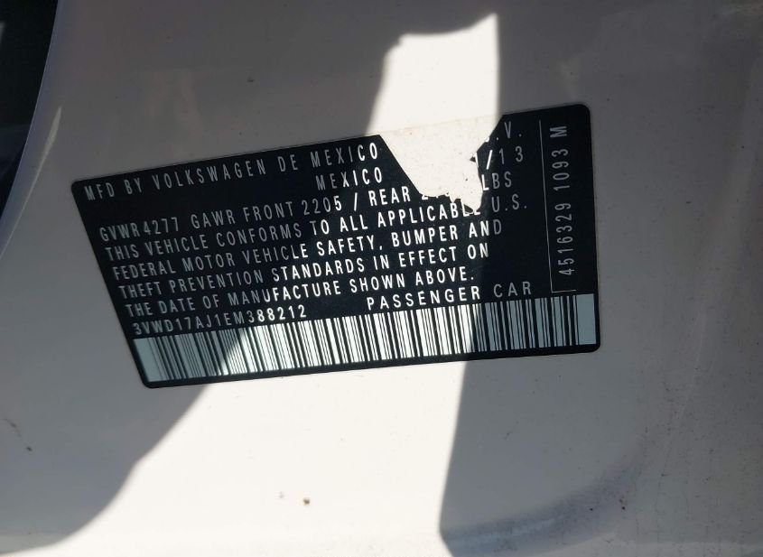 - VIN: 3VWD17AJ1EM388212