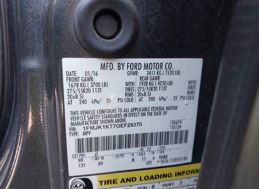 - VIN: 1FMJK1KT7GEF29370