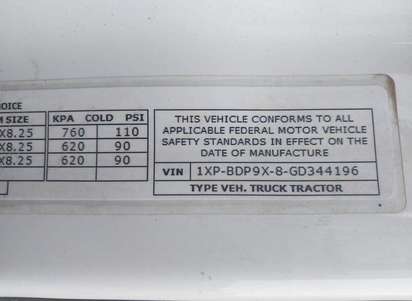 - VIN: 1XPBDP9X8GD344196