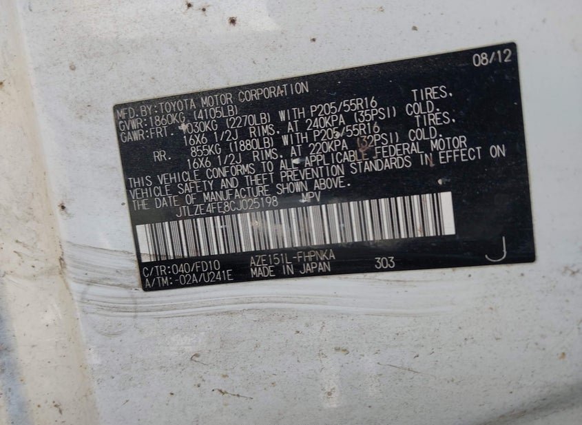 - VIN: JTLZE4FE8CJ025198