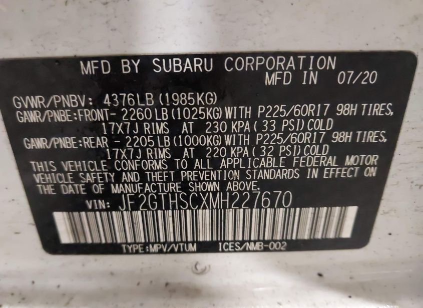 - VIN: JF2GTHSCXMH227670
