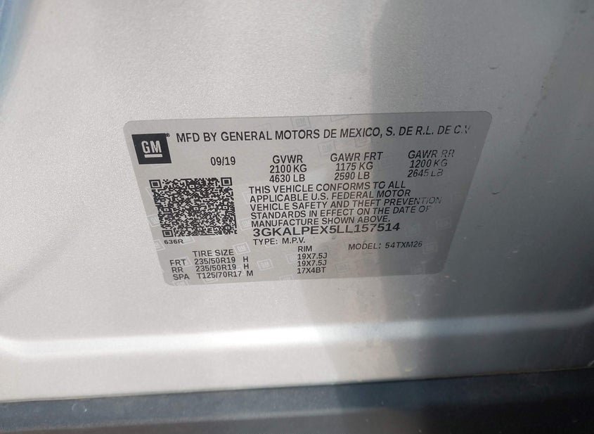 - VIN: 3GKALPEX5LL157514