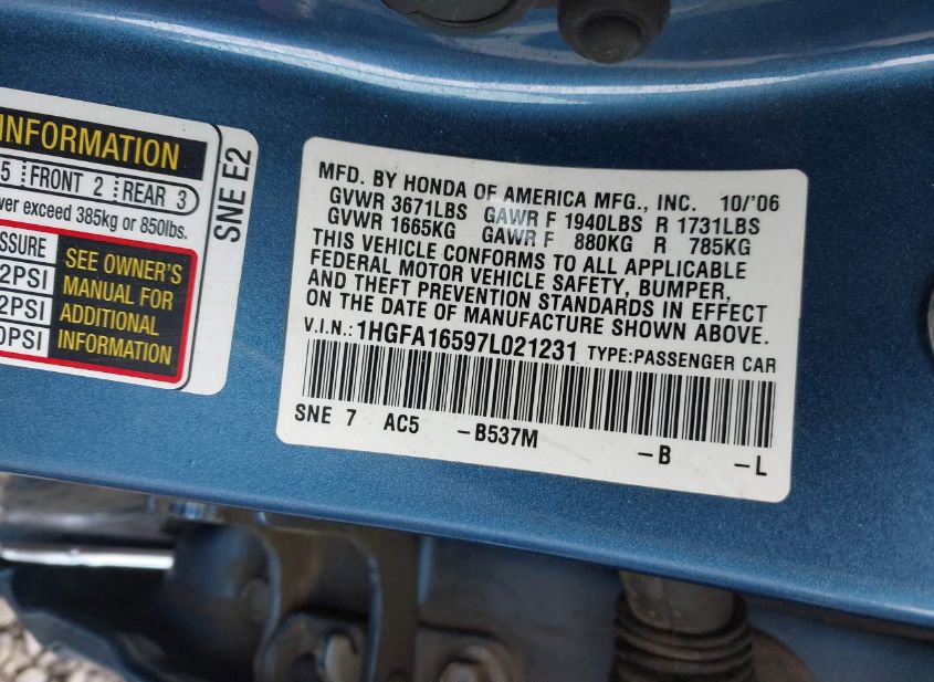 - VIN: 1HGFA16597L021231