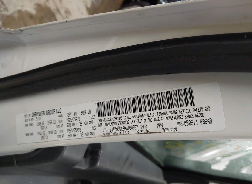 - VIN: 1J4PN2GK3AW160367