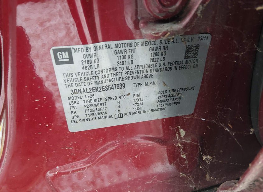 - VIN: 3GNAL2EK2ES647539
