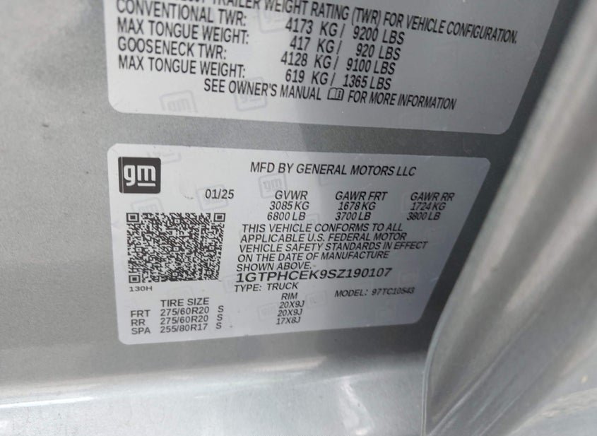 - VIN: 1GTPHCEK9SZ190107