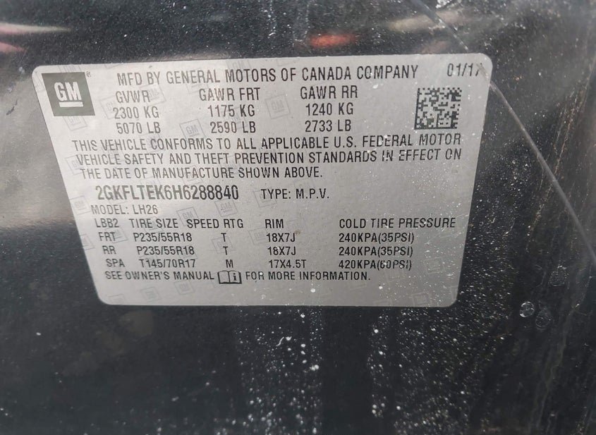 - VIN: 2GKFLTEK6H6288840