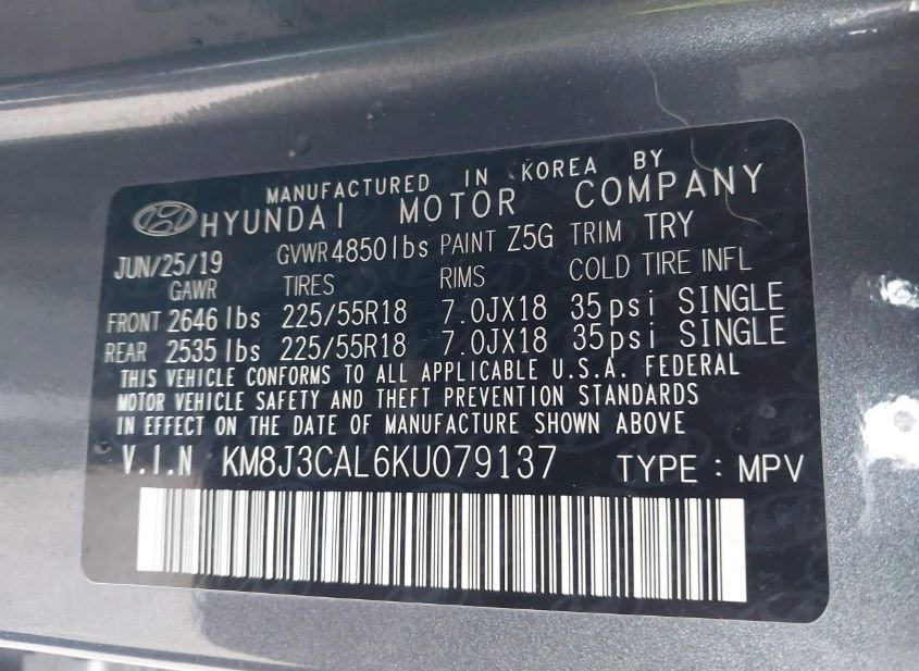 - VIN: KM8J3CAL6KU079137