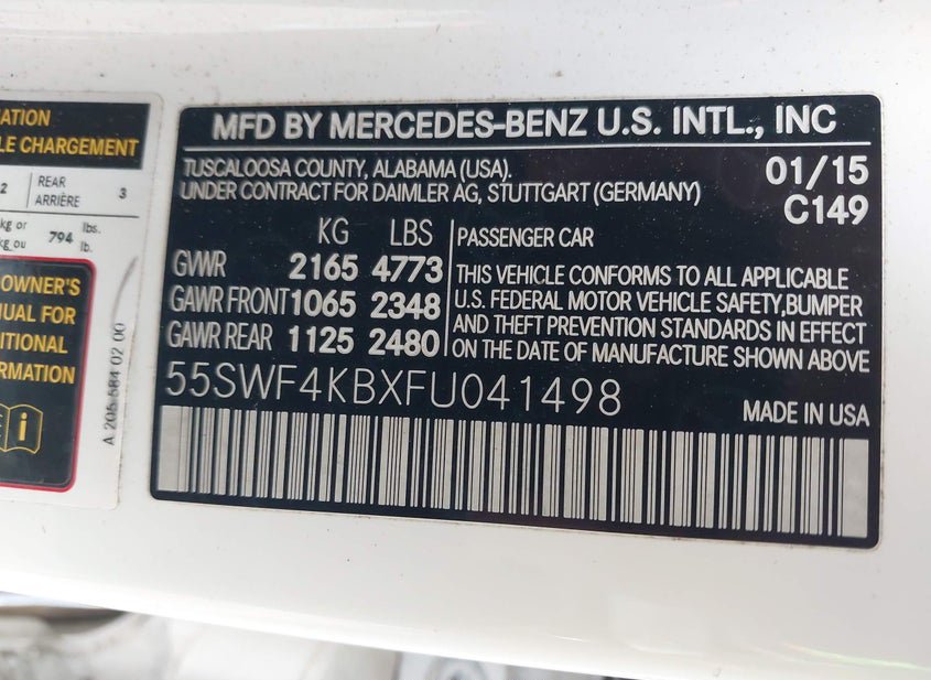 - Название лота: 2015 MERCEDES-BENZ C 300 4MATIC