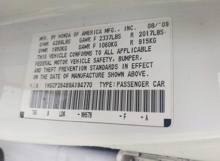 - VIN: 1HGCP26489A194770
