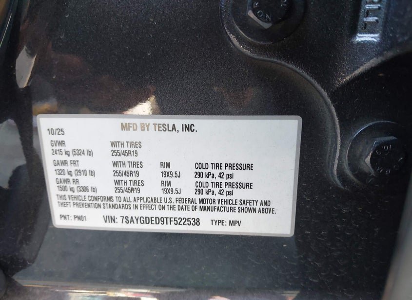 - VIN: 7SAYGDED9TF522538