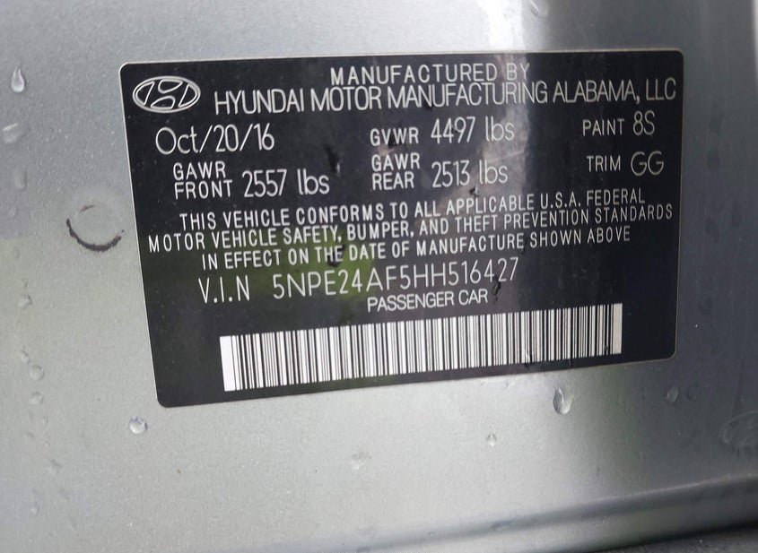 - VIN: 5NPE24AF5HH516427