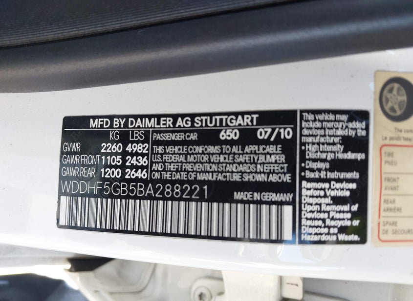 - VIN: WDDHF5GB5BA288221