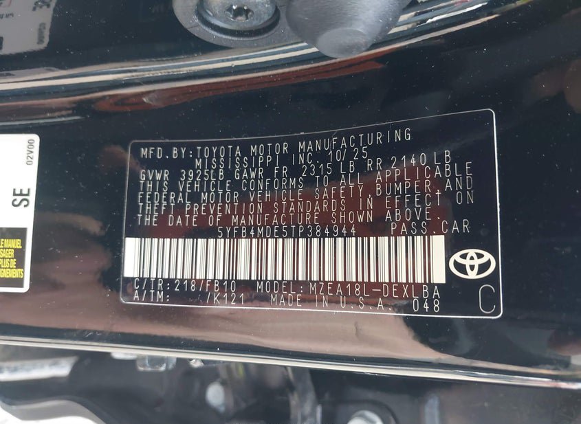 - VIN: 5YFB4MDE5TP384944
