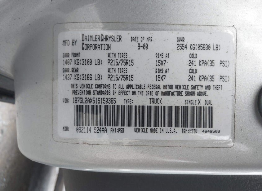 - VIN: 1B7GL2AX51S150365