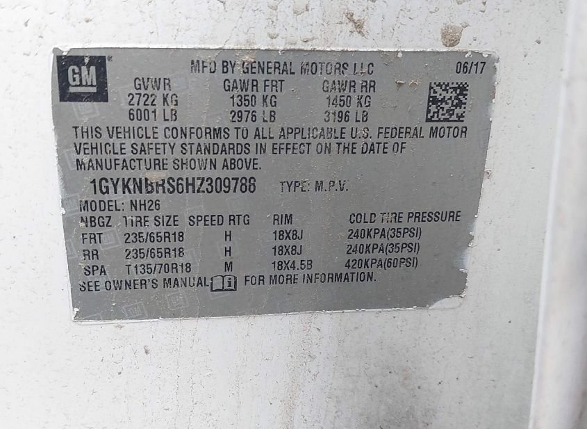 - VIN: 1GYKNBRS6HZ309788