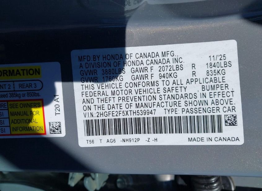- VIN: 2HGFE2F5XTH539947