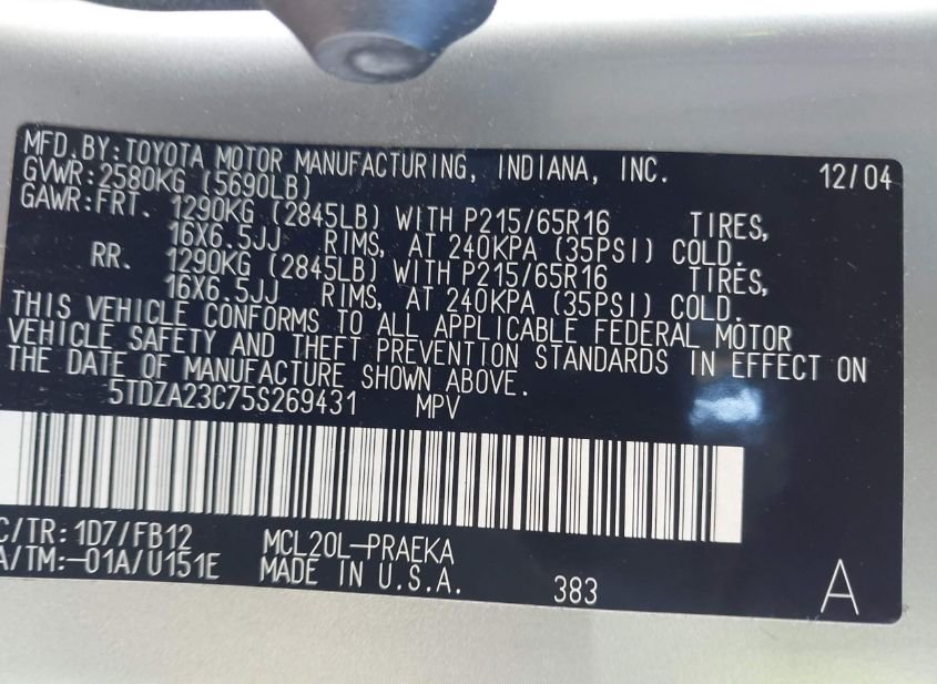 - VIN: 5TDZA23C75S269431