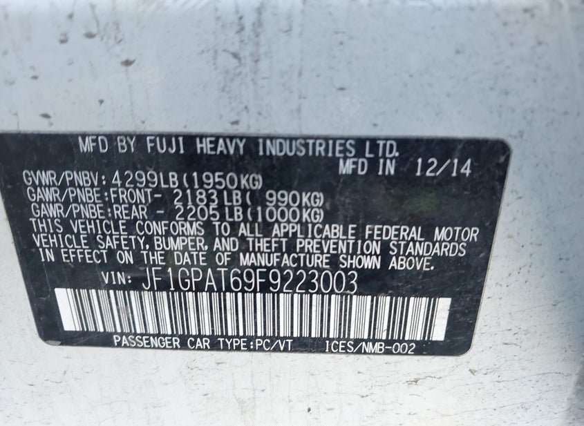 - VIN: JF1GPAT69F9223003