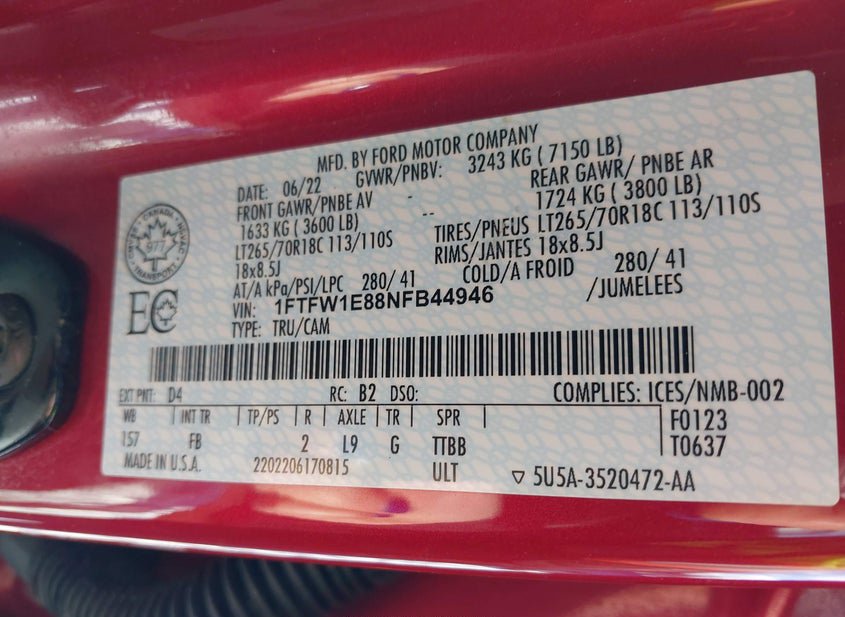 - VIN: 1FTFW1E88NFB44946