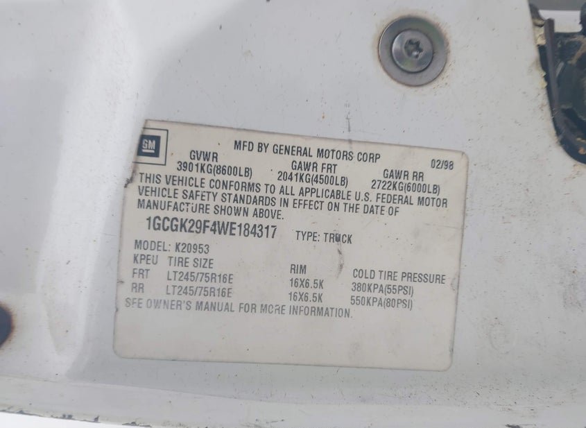 - VIN: 1GCGK29F4WE184317