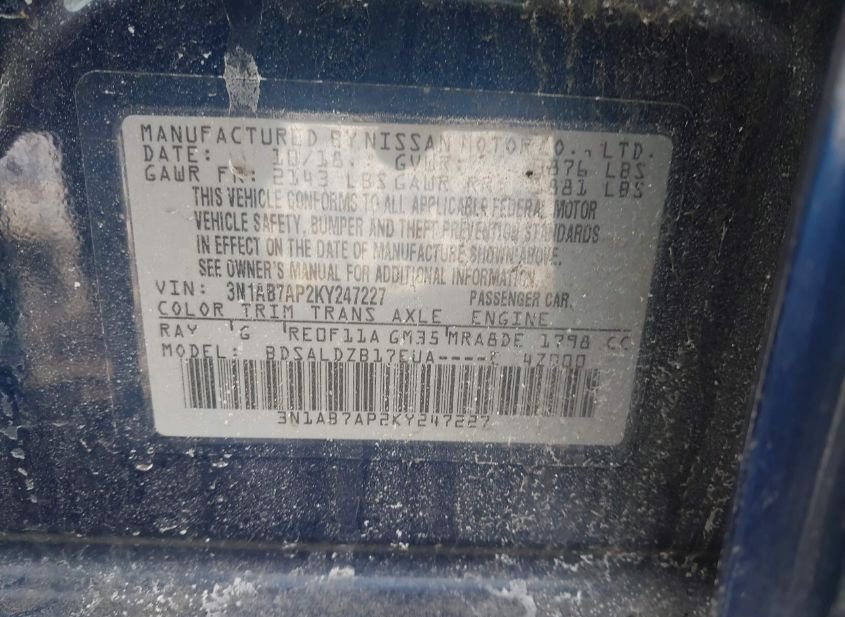 - VIN: 3N1AB7AP2KY247227