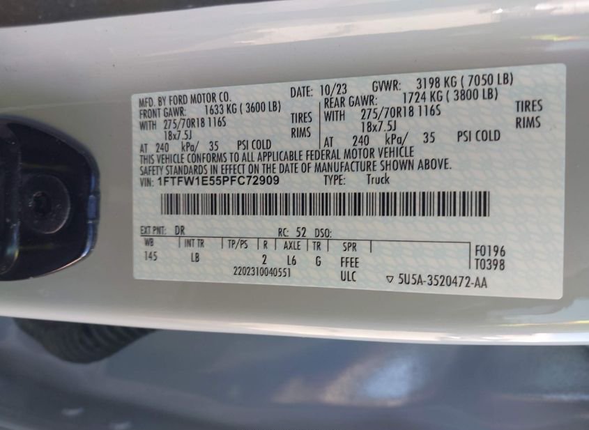 - VIN: 1FTFW1E55PFC72909