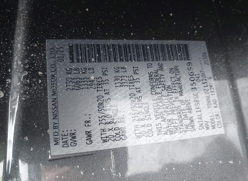 - VIN: 5N1AL1FS8SC350659