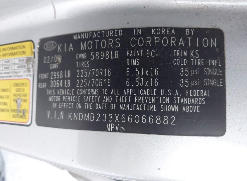 - VIN: KNDMB233X66066882