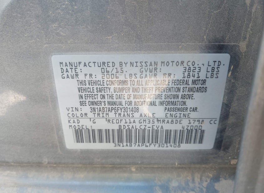 - VIN: 3N1AB7AP6FY301408