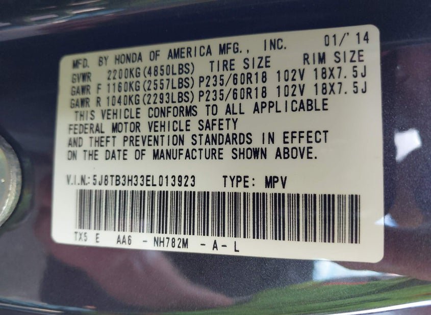 - VIN: 5J8TB3H33EL013923