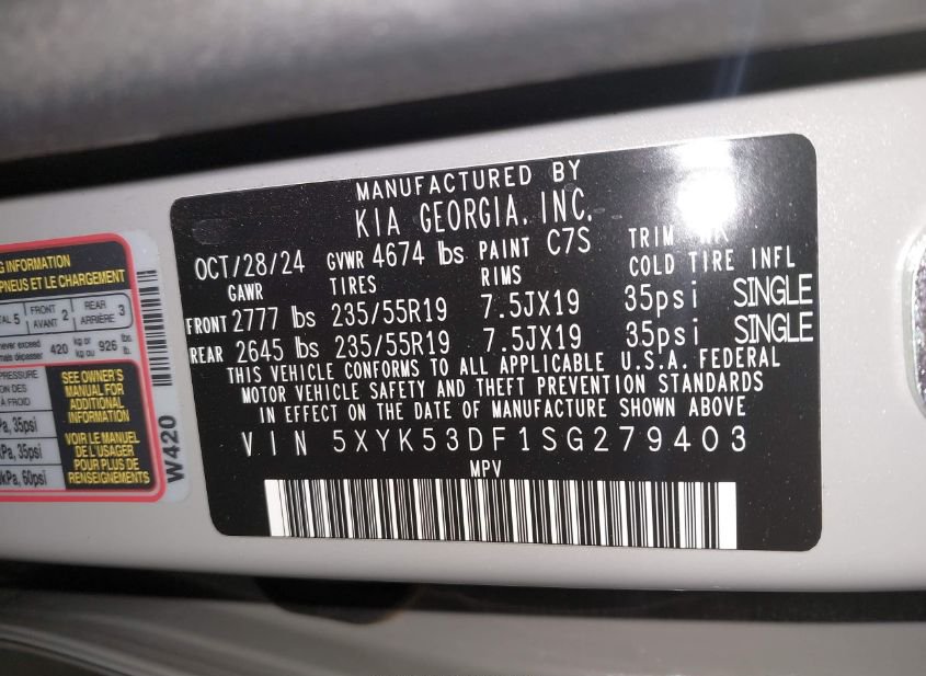 - VIN: 5XYK53DF1SG279403