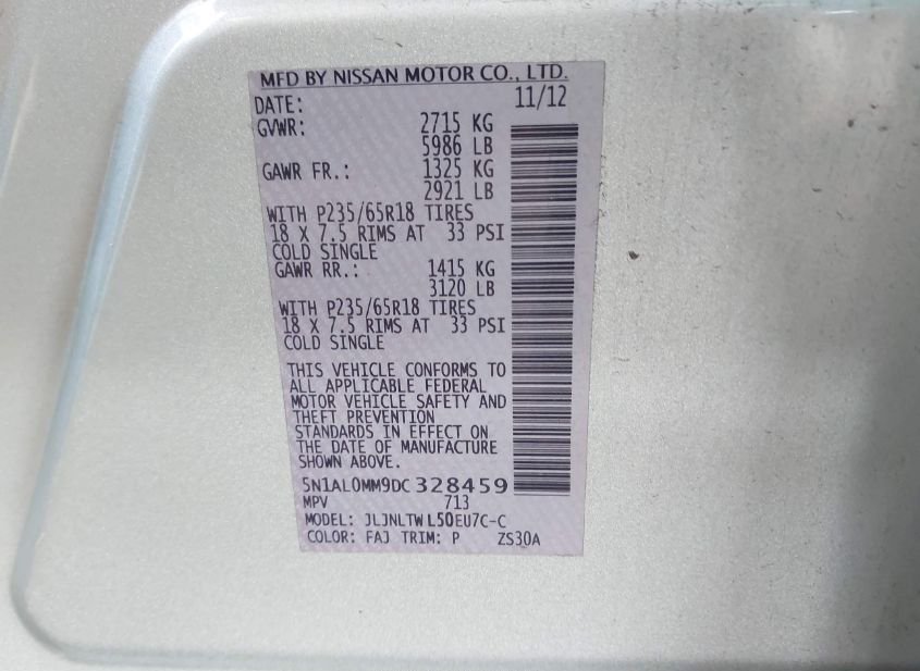 - VIN: 5N1AL0MM9DC328459