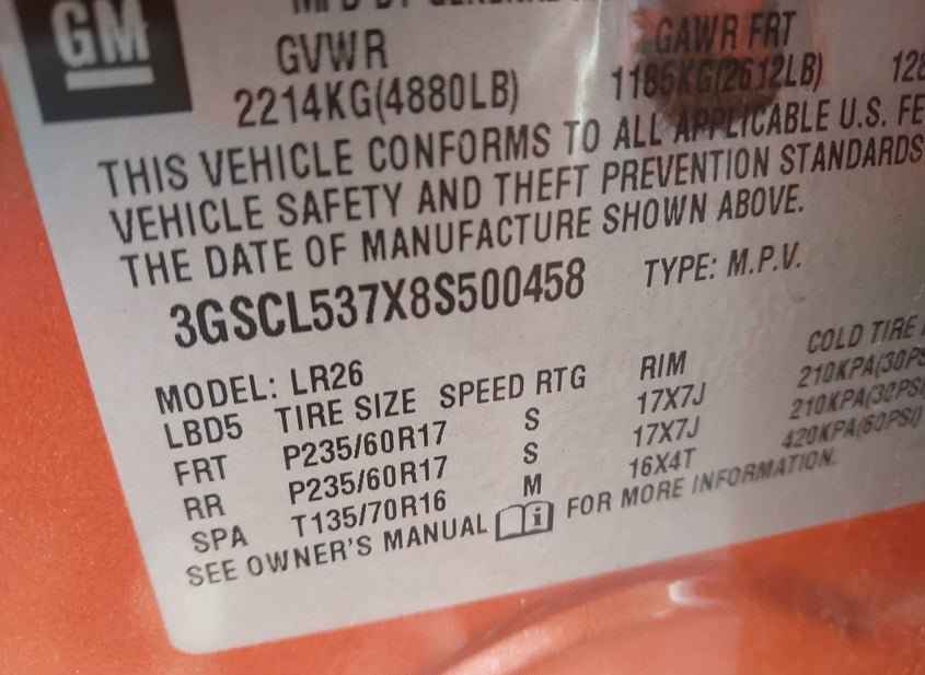 - VIN: 3GSCL537X8S500458