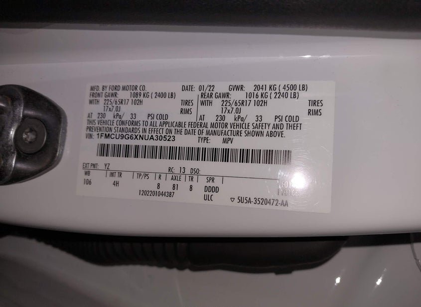 - VIN: 1FMCU9G6XNUA30523