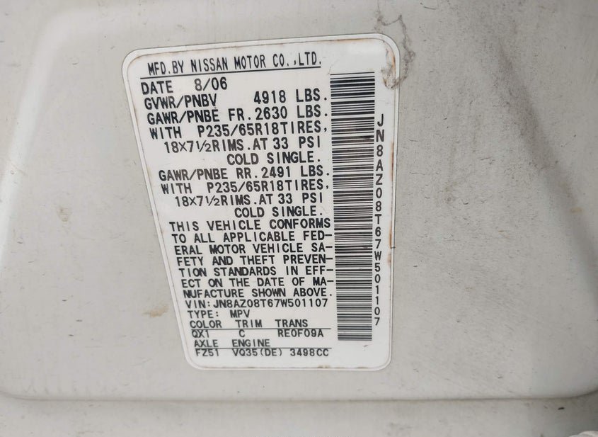 - VIN: JN8AZ08T67W501107