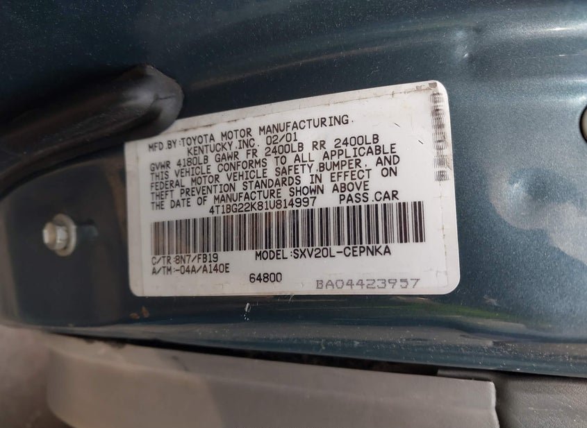 - VIN: 4T1BG22K81U814997