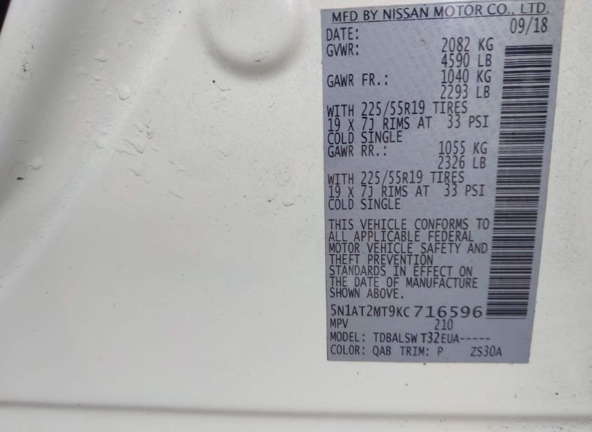 - VIN: 5N1AT2MT9KC716596