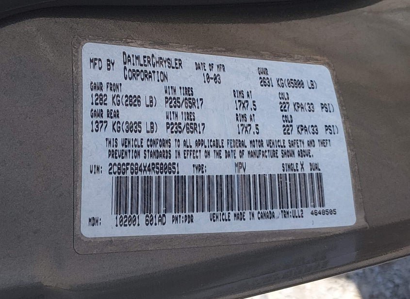 - Название лота: 2004 CHRYSLER PACIFICA