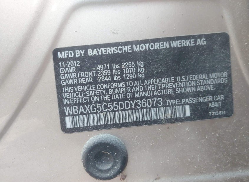 - VIN: WBAXG5C55DDY36073