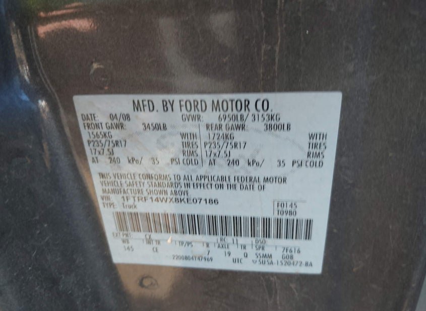 - VIN: 1FTRF14WX8KE07186