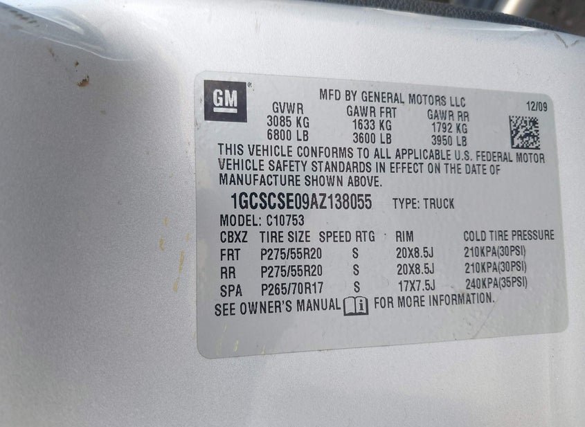 - VIN: 1GCSCSE09AZ138055
