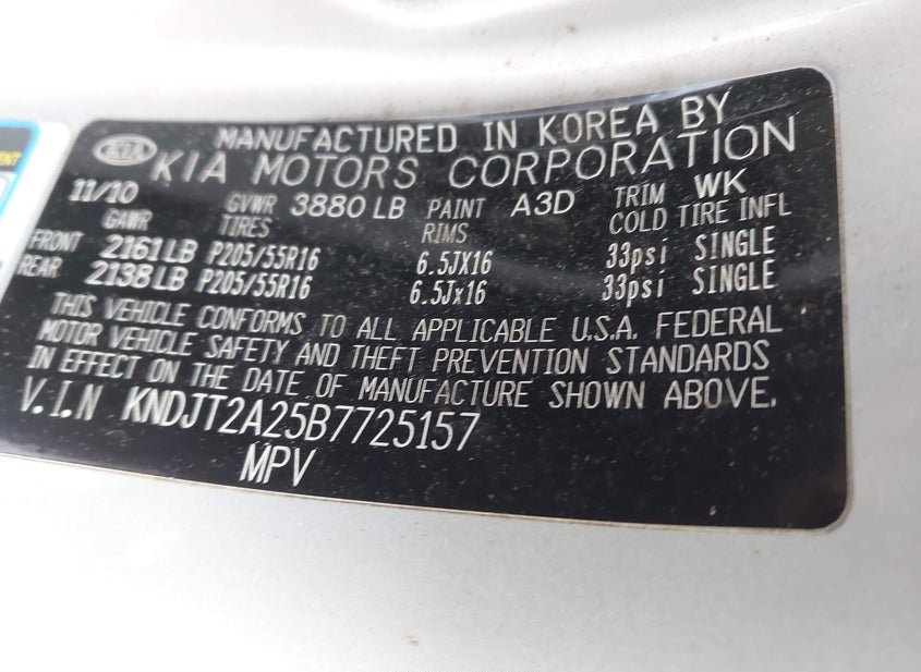- VIN: KNDJT2A25B7725157