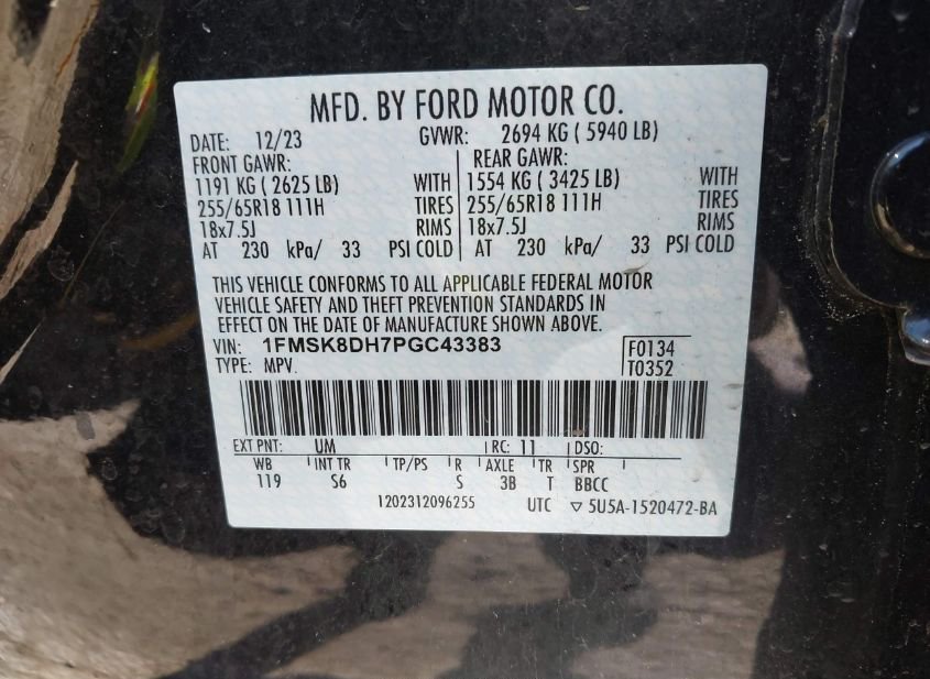 - VIN: 1FMSK8DH7PGC43383