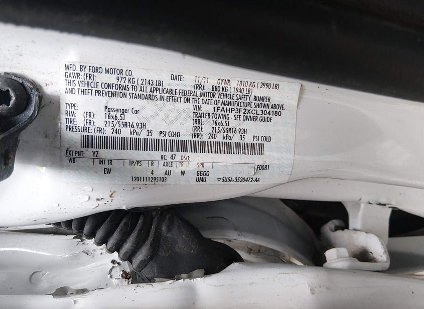- VIN: 1FAHP3F2XCL304180