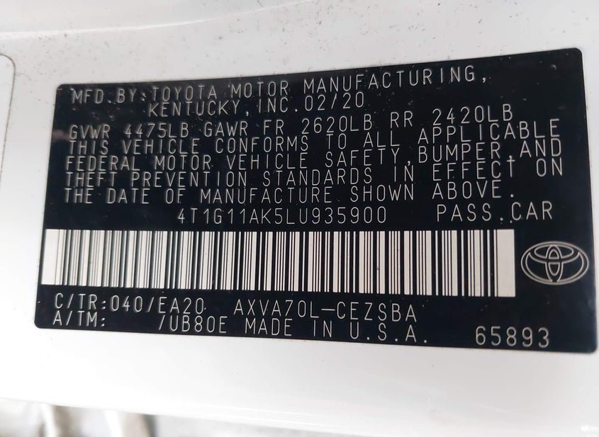 - VIN: 4T1G11AK5LU935900