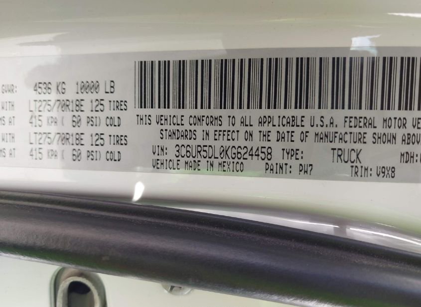 - VIN: 3C6UR5DL0KG624458