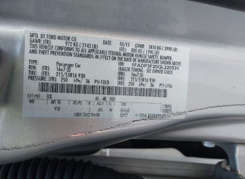- VIN: 1FADP3F20GL220535