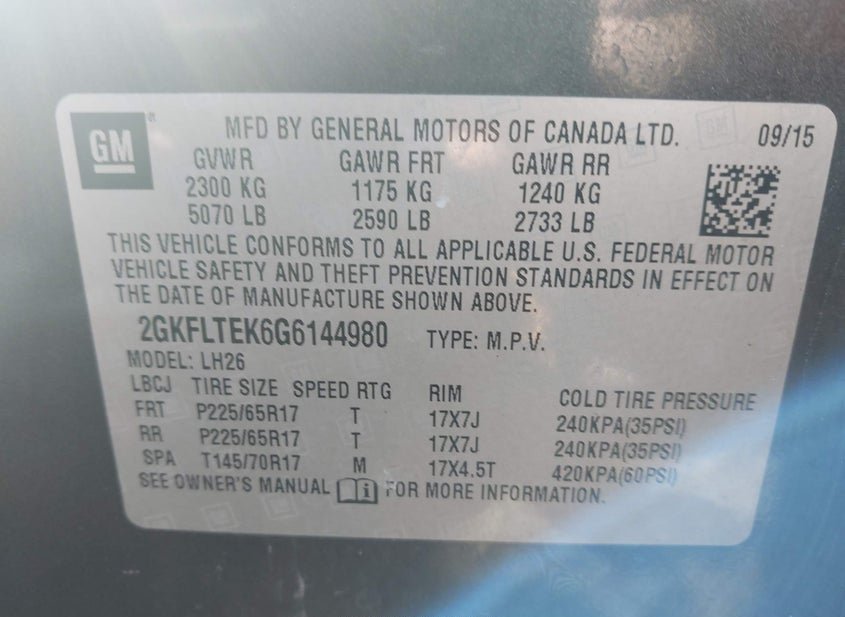 - VIN: 2GKFLTEK6G6144980